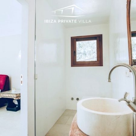 The outdoor area is finely designed to host memorable meals by the external dining area under the porch benefiting of a stunning view of the sea and the Old Town of Ibiza.